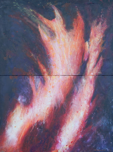 Die elfte Tafel / Eleventh tablet Der Weltenbrand Dann verbrannte das Land in einem Feuersturm (XI, 102-105). The World Brand Then the country was burned in a fire storm. Acryl auf Leinwand / Acrylic on canvas, 160 x 120 cm, 2015