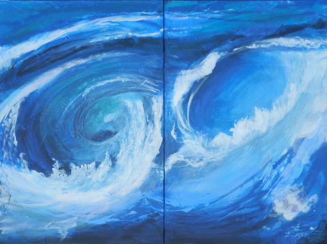 Die elfte Tafel / Eleventh tablet Die Sintflut Das Land verschwand unter einer Riesenflut (XI, 106-113). The Flood The country disappeared under an immense flood. Acryl auf Leinwand / Acrylic on canvas, 120 x 160 cm, 2015