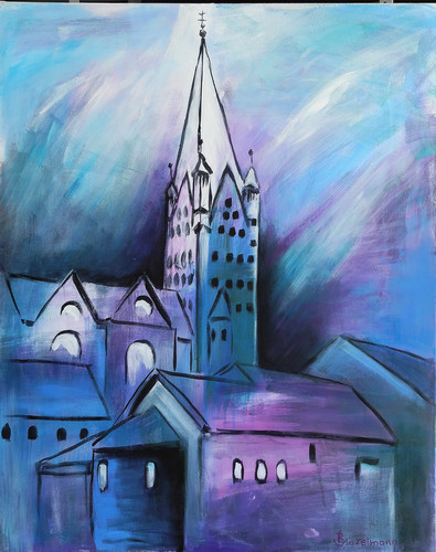 Paderborner Dom mit KaiserpfalzAcryl auf Leinwand / acrylic on canvas, 100 x 80 cm, 2022