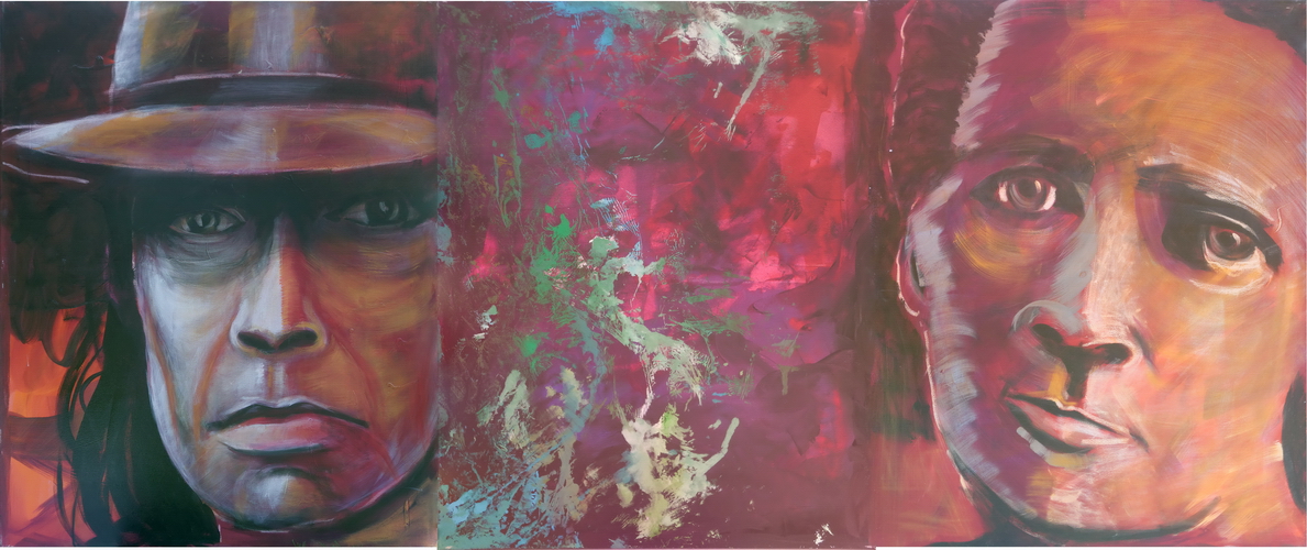Triptychon Lindenberg - Curie Acryl und Ölkreide auf Leinwand / acrylic and oilsticks on canvas, 100 x 240 cm, 2014