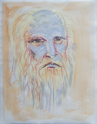 Leonardo da Vinci Acryl und Ölkreide auf Bütten / acrylic and oilsticks on handmade paper, 62 x 50 cm, 2014