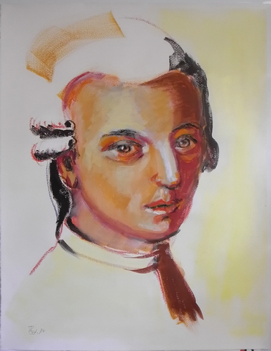 Mozart I Acryl und Ölkreide auf Bütten / acrylic and oilsticks on handmade paper, 62 x 50 cm, 2014
