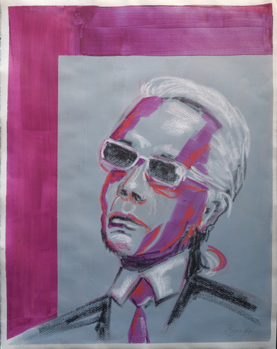 Karl Lagerfeld II Acryl und Ölkreide auf Bütten / acrylic and oilsticks on handmade paper, 62 x 50 cm, 2014