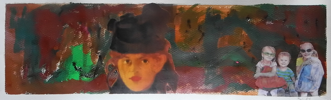 Berthe MorisotAcryl, Ölkreide und Collage auf Bütten / acrylic, oilsticks and collage on handmade paper, 16 x 50 cm, 2014