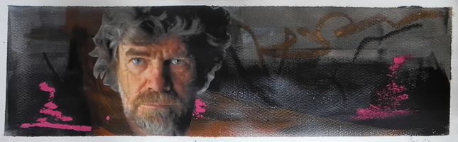 Reinhold MessnerAcryl, Ölkreide und Collage auf Bütten / acrylic, oilsticks and collage on handmade paper, 16 x 50 cm, 2014