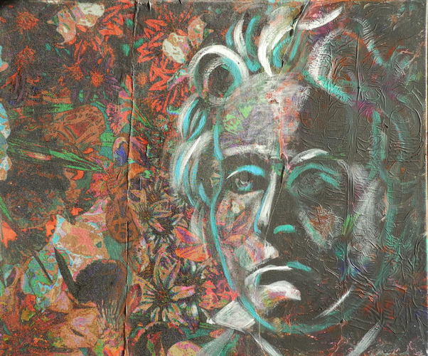 Ludwig van Beethoven / grün Acryl auf Stoff auf Leinwand / acrylic on cloth on canvas 50 x 60 cm, 2020