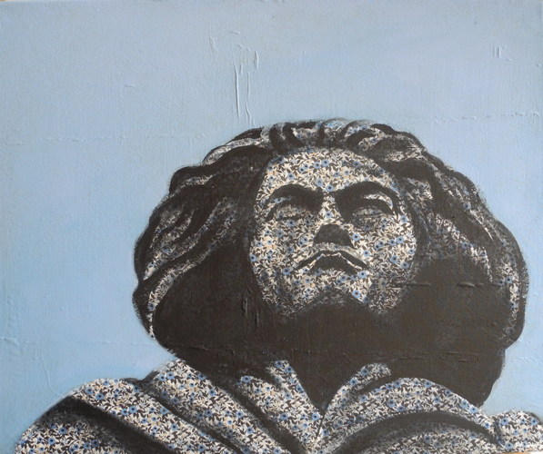 Ludwig van Beethoven / hellblau Acryl auf Stoff auf Leinwand / acrylic on cloth on canvas 50 x 60 cm, 2020