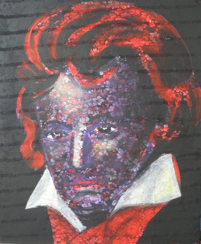 Ludwig van Beethoven / Blumen Acryl auf Stoff auf Leinwand / acrylic on cloth on canvas 60 x 50 cm, 2020