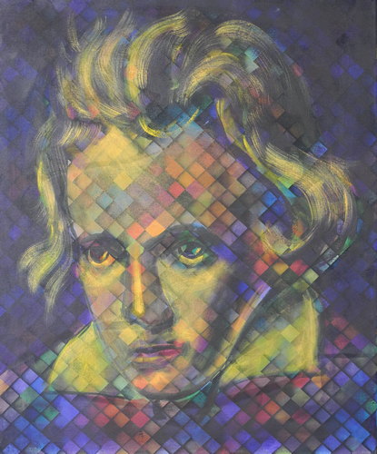 Ludwig van Beethoven / Karo Acryl auf Stoff auf Leinwand / acrylic on cloth on canvas 60 x 50 cm, 2020