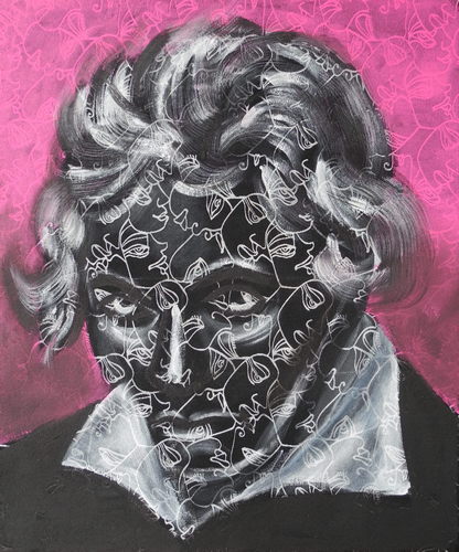 Ludwig van Beethoven / schwarz Acryl auf Stoff auf Leinwand / acrylic on cloth on canvas 60 x 50 cm, 2020