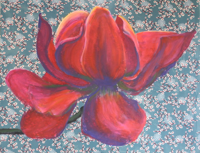 Magnolie Acryl auf Blumenstoff auf Leinwand, 100 x 130 cm, 2018